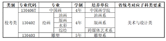 西安美术学院2026年本科招生校考专业省统考科类对应要求 |