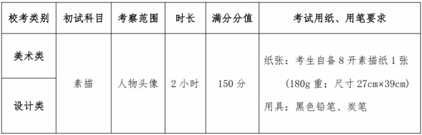 4.学校根据教育部有关规定,分别按不超过校考美术类、设计类包含专业招生计划数的4倍按类别发放校考合格证。末位考生校考成绩总分相同时,美术类依次比较考生素描、创意色彩、速写单科成绩作为排序依据;设计类依次比较考生创意设计、素描、创意色彩单科成绩作为排序依据。专业校考复试单科成绩不及格(未达60分),视为校考不合格。