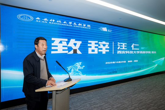 本次活动在西安科技大学高新学院宣传片中拉开了序幕,宣传片中生动展现了学校在学科建设、人才培养、科学研究及校园文化等方面的丰硕成果与蓬勃生机。西安科技大学高新学院院长汪仁发表了致辞。汪仁院长对与会企业代表表示热烈欢迎,并强调了在新一轮科技革命和产业变革背景下,深化校企合作、共育创新人才的重要性。他指出,学院始终坚持以服务社会为导向,积极拓展校企合作的广度与深度,希望以此次座谈会为契机,与企业携手探索更多元、更高效的合作模式,实现资源共享、优势互补、共赢发展。