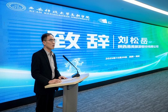 企业代表陕西易美旅游股份有限公司人事总监刘松岳分享了企业与高校合作的经验与展望。他结合企业实际人才需求,阐述了校企协同育人对提升学生实践能力、缩短就业磨合期的积极意义,并表达了与学院在实习基地建设、定制化人才培养、项目研发等领域进一步加强合作的意愿。