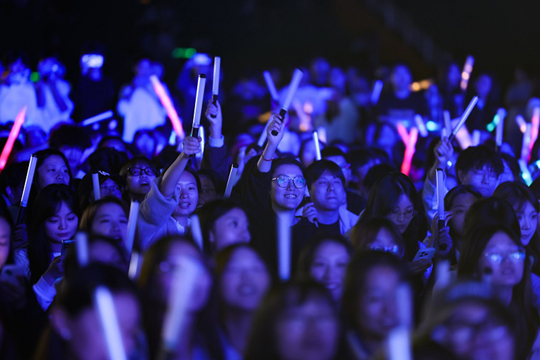 (图六)新生辅导员与新生同台演绎的《爱你》引爆全场沸腾!