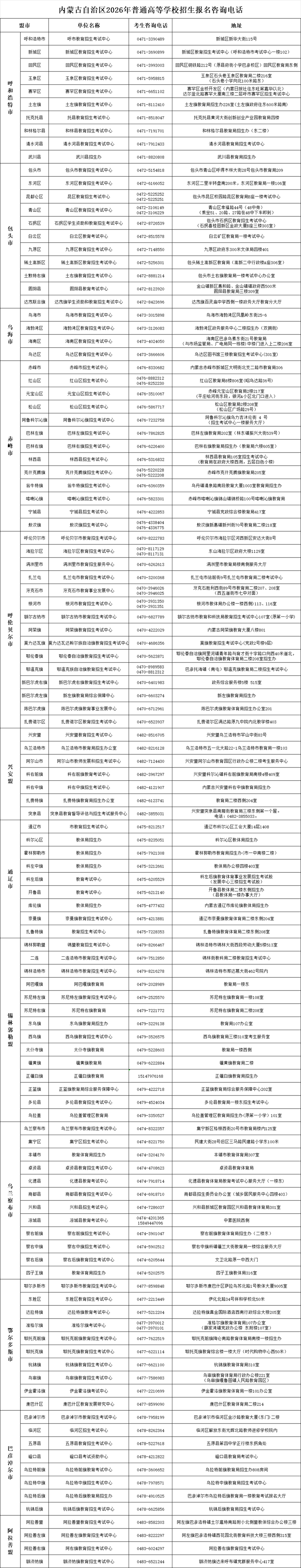 内蒙古自治区2026年普通高等学校招生报名咨询电话