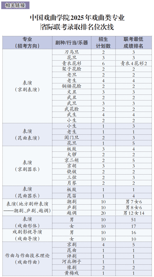 中国戏曲学院教务处处长、本科招生办公室主任王莹表示,学校近年增加了戏剧教育(戏曲教育)专业,该专业是戏曲与教育、人文与社科融合的交叉学科,培养通晓中华优秀传统文化、懂得艺术教育规律、能够从事戏曲教学与普及推广的高素质人才,其课程与实践体系注重与中小学、文化场馆等单位合作,以适应社会对艺术教育人才的迫切需求。