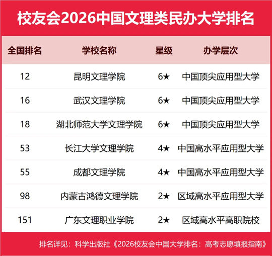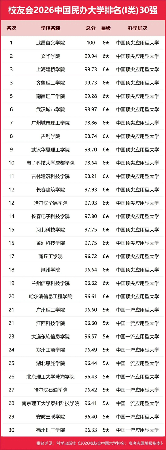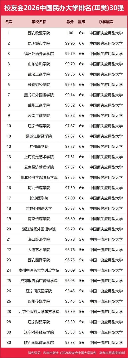 二、武昌首义学院、三亚学院、西安欧亚学院、广州南方学院问鼎2026中国民办大学排名(应用型)第一,四川大学锦江学院蝉联中国独立学院排名冠军