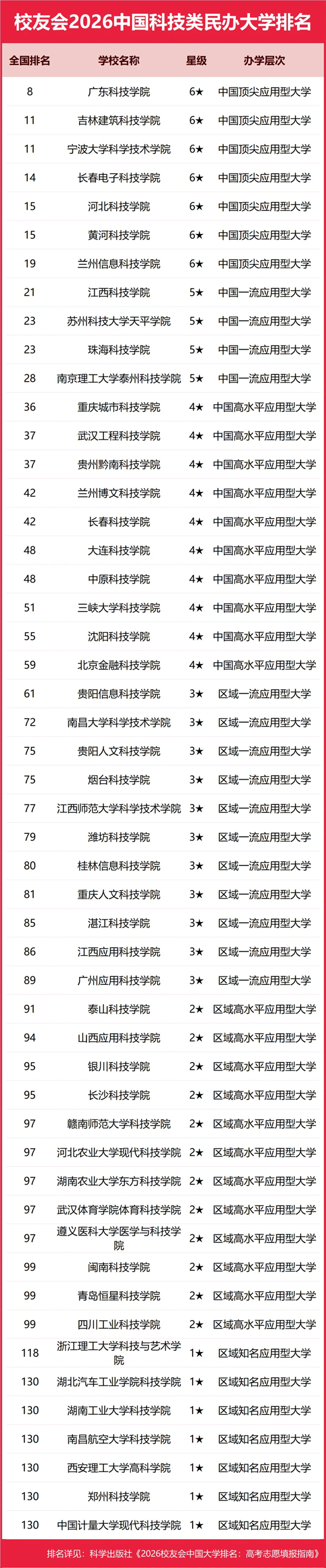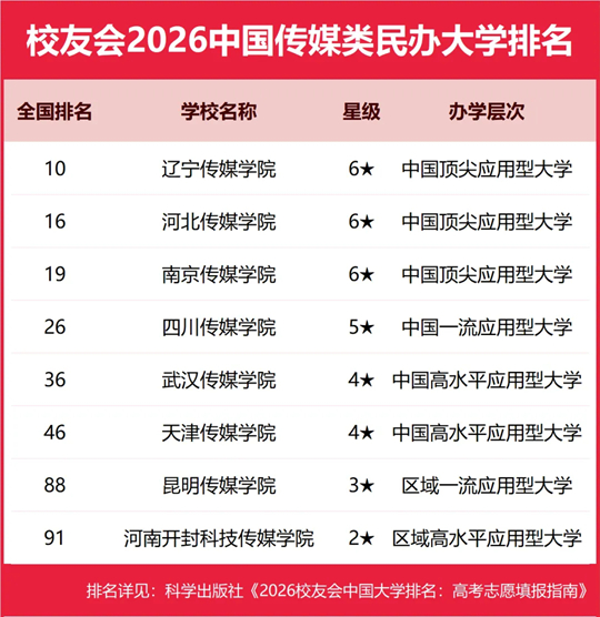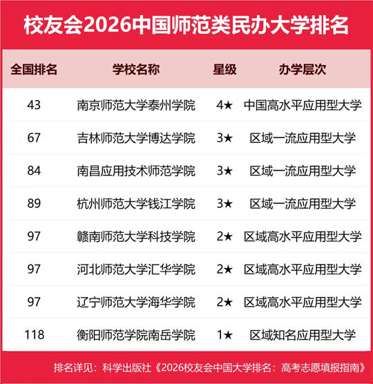 按照校友会2026中国大学分类体系标准,将中国民办高校按照研究型和应用型两个类型进行评价,旨在引导民办高校科学定位、合理分类、走差异化发展道路。