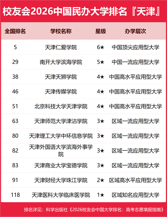 天津仁爱学院雄居2026天津市民办大学排名第一,南开大学滨海学院跻身前3强
