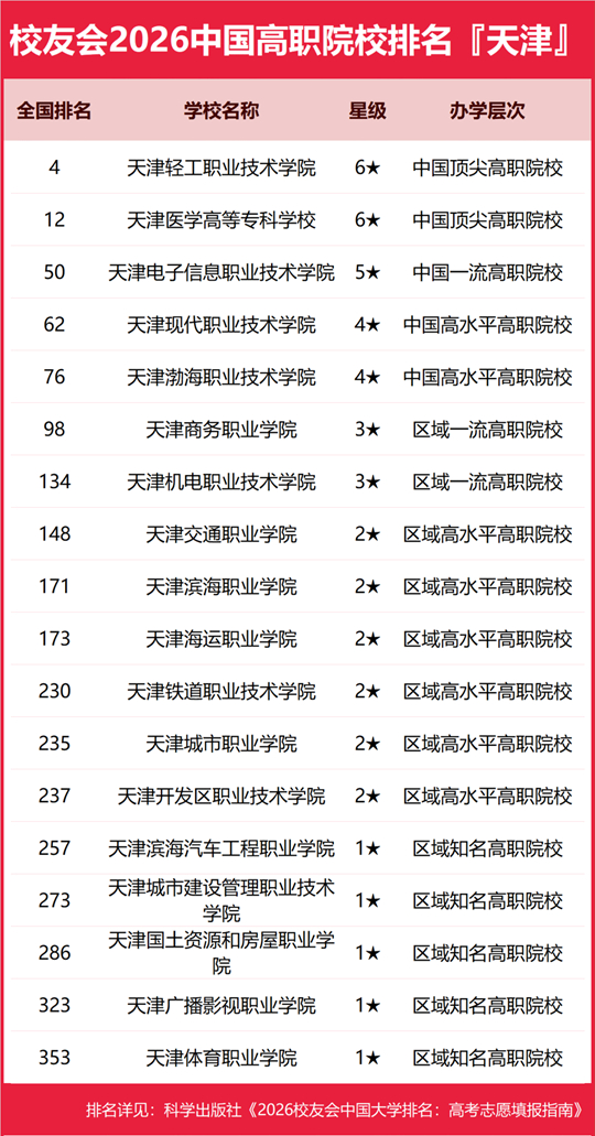天津轻工职业技术学院雄居2026天津市高职院校排名第一,天津电子信息职业技术学院跻身前3强