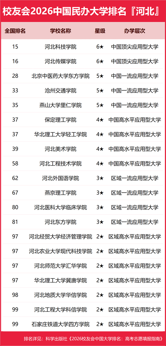 河北科技学院雄居2026河北省民办大学排名第一,河北传媒学院跻身前3强