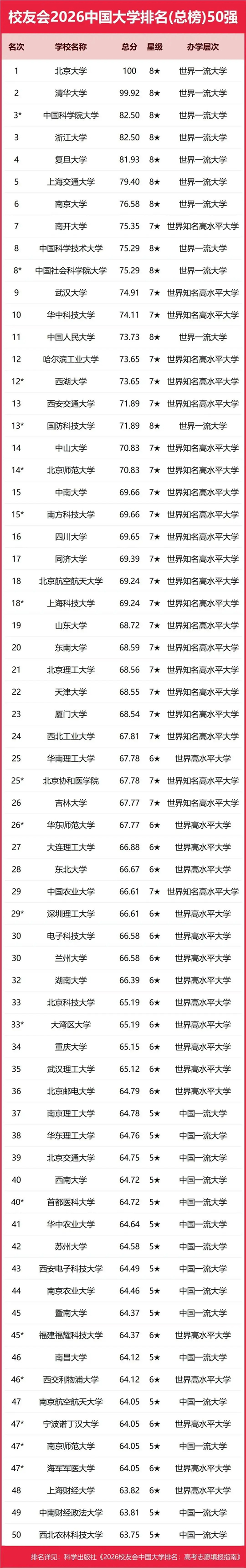 科学出版社《2026校友会中国大学排名:高考志愿填报指南》