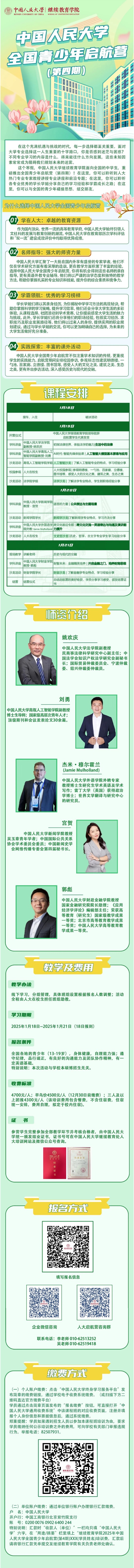 中国人民大学教授名师领航︱全国青少年启航营开启招生
