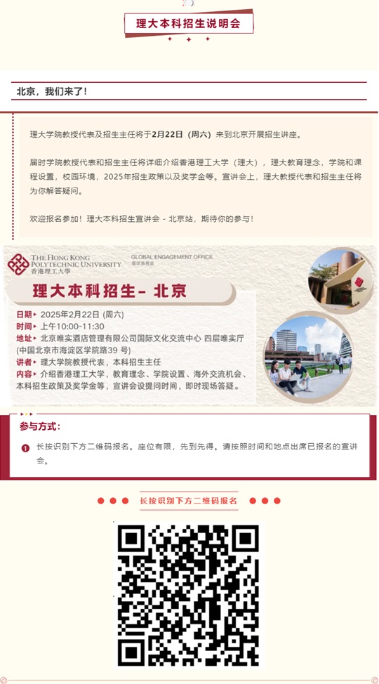 香港理工大学2月22日本科招生宣讲会(北京)即将开始