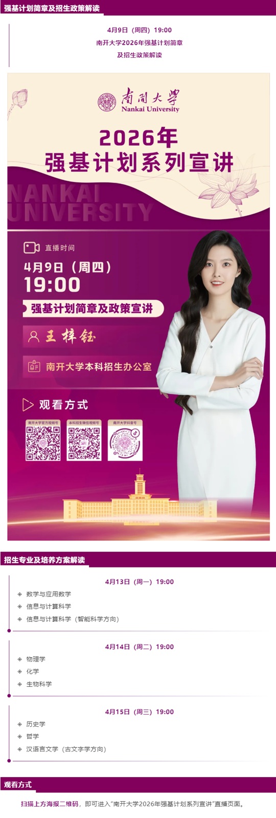 | 直播预告 | 4月9日南开大学2026年强基计划系列宣讲直播(一) |