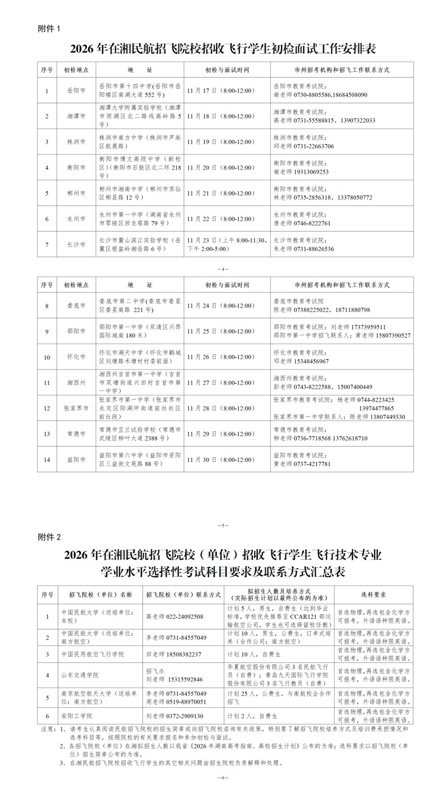 | 关于组织2026年在湘民航招飞院校招收飞行学生初检等有关工作的通知 |