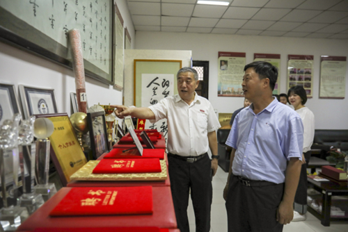 参观“徐国富工作室”,徐国富主席向徐富权主席一行介绍了他的个人发明专利14项、世界吉尼斯纪录、三项世界纪录等。