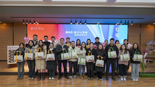 11月28日14:30,由学生处牵头、小红花辅导员工作室参与前期探讨、活动组织和方案制定的青蓝计划启动仪式于多功能报告厅展开。活动在大数据学院、信息工程学院闫相君和崔嘉源老师的精彩演唱中启幕,台下的辅导员们热情高涨手持kt版随着音乐的节奏摇摆,气氛悄然升温。颁发聘书、赠送礼包环节不仅增强了新老辅导员的归属感,更拉近了他们之间的距离,促进了彼此间的交流与合作。任文姣和国画两位老师分别代表新、老辅导员发言,任文姣老师回顾了自己“829”天的辅导员生涯,分享了在工作中的深刻感悟。国画老师则感慨道,在辅导员的工作中,她与学生共同成长、相互成就,彼此都收获了宝贵的经验与美好的回忆。最后,淬炼商学院的史张炜老师以一曲古筝独奏《忆江南》为本次活动画上了圆满的句号。