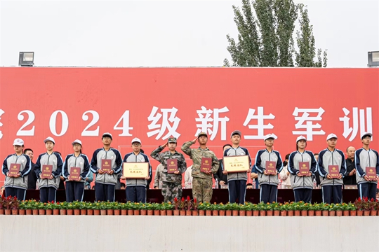 在阵阵欢呼中,2024级新生军训成果汇报表演正式结束。军训团政委张明宇宣读信院〔2024〕150号《晋中信息学院关于表彰2024级新生军训先进连队、先进个人和优秀军训教官的决定》,对在军训中表现突出的先进连队、先进个人和优秀教官进行表彰。校领导分类别、分批次为他们颁发证书。接过证书的这一刻,荣誉与汗水汇聚成强大的力量,激励着他们以军训为起点,继承和发扬部队的优良作风,严于律己,开启全新的大学生活。
