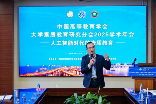 10月17日至19日,中国高等教育学会大学素质教育研究分会2025学术年会在辽宁大连隆重召开。年会主题为“人工智能时代的素质教育”。来自260余所高校、研究机构和企事业单位的656名与会代表及大连大学师生线下参会;线上通过超星平台、大连大学视频号等进行直播,共有5600余人次收看了开幕式及大会报告,会议照片直播点击量10万余人次。中国高等教育学会副会长、吉林大学原党委书记姜治莹,辽宁省教育厅副厅长孔峰,大连市人民政府副秘书长孙美艳等嘉宾出席。