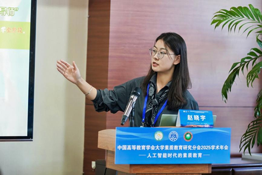 赵晓宇在“素质教育高质量发展的未来图景”专题研讨中,作题为《全人教育背景下素质教育方法的生态重构——基于泰山科技学院书院多导师制的探索》的报告。她系统分享了学校在全员书院制育人模式下,通过多导师制构建素质教育新生态的实践与思考。报告详细阐释了在书院平台中,发展导师、全生异科导师、工坊项目指导教师等多类导师的角色定位与协同育人机制,呈现了学校将素质教育从“教学场”无缝延伸至“生活场”的常态化育人模式。西南交通大学孔祥彬等与会专家对泰山科技学院在导师资源上的大力投入与创新实践表示高度赞赏,并就各类导师的具体工作机制、全生异科导师体系的构建与运行等话题,与汇报人进行了深入交流与探讨。