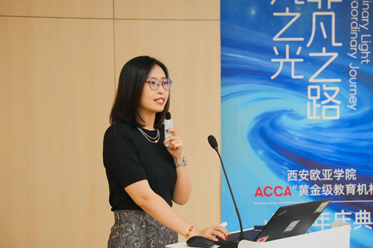 庆典伊始,会计金融学院谢涛院长与ACCA教育关系发展经理刘芳老师先后致辞。谢涛院长在欢迎辞中回顾了ACCA项目自2009年创办以来从起步到领跑的升级历程,特别强调在学校三十校庆的重要节点,ACCA五连冠的成绩是全体欧亚人共同的骄傲。将以此为契机,对学子提出更高标准的培养要求,让每一束‘平凡之光’都能在国际化舞台上绽放异彩。