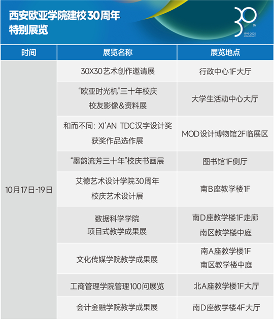围绕建校30周年庆典,西安欧亚学院将以“庆祝、致敬、启新”为核心脉络,陆续推出一系列内涵深刻、形式多样的庆祝活动。系列活动由四大精彩版块构成,分别涵盖艺术盛典、校园新地标启用、教育教学与学术成果展示,以及校友与社会的深度互动。在全校各二级学院与职能部门的协同共创下,这些活动将不仅呈现欧亚在教育、科研、社会服务与文化传承等领域的多元成就,更彰显30年来欧亚人向光而行的精神与力量。