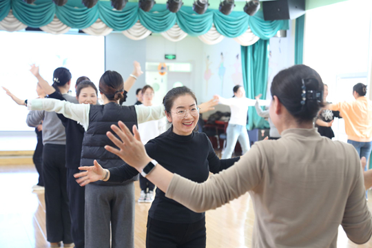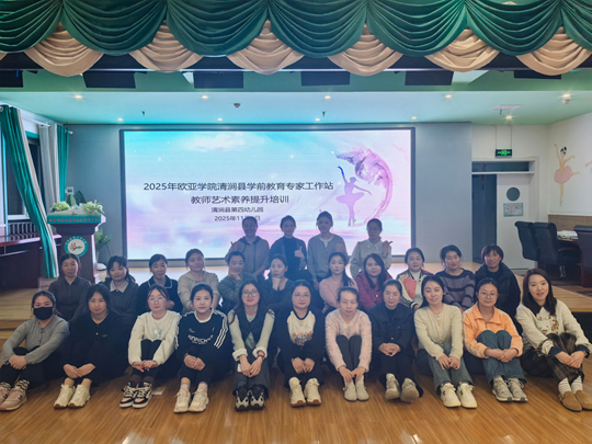 11月8日,西安欧亚学院2名前教育教师团队赴清涧县第四幼儿园,对27名清涧县学前教育教师开展教师艺术素养能力提升培训。培训以“身体与音乐”为主题,聚焦艺术教育在学前教学中的创造性与实践性。通过体验式教学与行动学习,帮助基层教师拓展艺术教学视野,激发课堂活力,让美育在一线教学中真正生根。