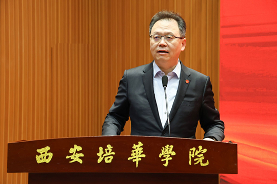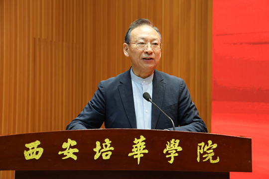 西安培华学院理事长姜波致欢迎词。他对江必新教授再次莅临培华表示了热烈欢迎,表示培华坚持“以人为本、以德为先”的办学理念,坚持依法治校,始终秉承了红色教育、女性教育、职业教育三大基因,传承姜维之先生的精神内核,积累了深厚的历史底蕴。学校法学专业自1999年设立以来,不断创新和发展,为社会培养了一大批高素质、复合型、应用型的法治人才。他表示,此次报告会对深化法治教育、提升师生法治素养具有重要意义。
