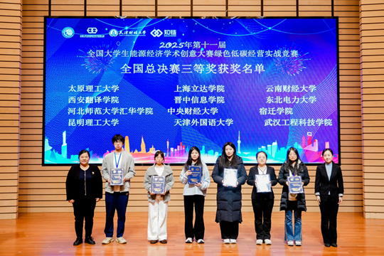 12月6日,第十一届全国大学生能源经济学术创意大赛绿色低碳经营实战竞赛全国总决赛在天津财经大学落下帷幕。晋中信息学院由王怡、李维佳两位老师指导,裴静瑶、张梦、王依婷三名同学组成的参赛团队,凭借扎实的专业功底和出色的实战决策能力,在全国78支本科组参赛队伍中脱颖而出,最终斩获全国三等奖,为学校赢得荣誉。