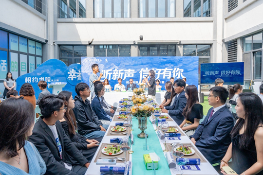 长桌铺开,青瓷餐具映着光影,钢琴曲《午后的旅行》缓缓流淌。交流环节中,老师们以轻松自然的方式,与新生们探讨成长与幸福的多重维度。