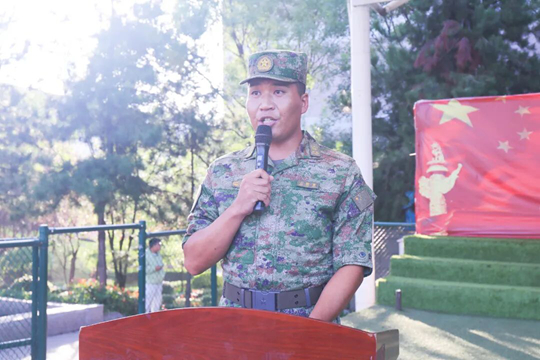 优秀教官代表罗军向全体新生送上“纪律、吃苦、团队”三把钥匙,寄语同学们“把操场上的脚印,变成铁轨上的里程”。