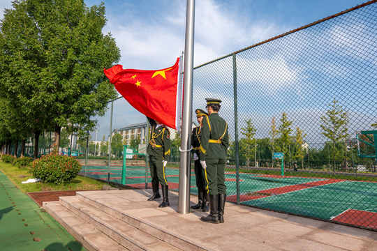 庄严的国歌声响起,五星红旗冉冉升起,全体师生肃立行注目礼。