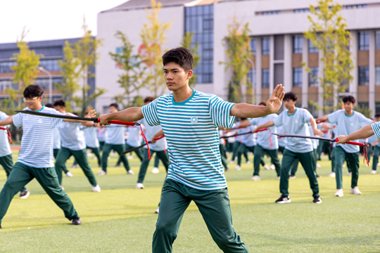 随着分列式指令的下达,军训汇报表演正式开始。各方阵队伍步伐铿锵、口号嘹亮,依次通过主席台,接受检阅。随后进行的匕首操、大刀连表演刚劲有力,展现了泰科学子的昂扬斗志;青春热血的大合唱《有我在》激情澎湃,将现场气氛推向高潮。同学们以娴熟的动作、恢宏的气势,完美展现了半月来的训练成果和锐意进取、自强自信的精神风貌。