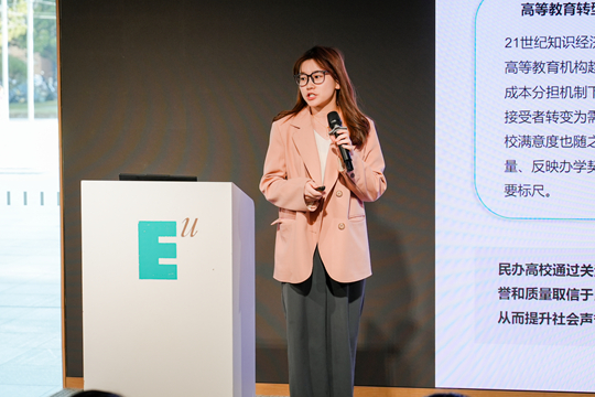 圆桌论坛环节,西安欧亚学院通识教育学院宝丽格老师基于《民办高校学生的学习挑战及其对学习投入的影响——以西安欧亚学院为例》研究,与现场师生进行了对话研讨。对话聚焦民办高校学生学习挑战及对学习投入的影响,民办高校学生的就业压力、学费与生活费担忧等生存焦虑和前途迷茫问题突出,同时学生还面临自我效能感不足、时间管理薄弱等能力与动机性困难。不同群体学习挑战差异明显,第一代大学生结构性压力突出,男生困难程度高于女生,各年级面临不同核心问题,学习挑战通过“阻力机制”和“推力机制”影响学习参与。学生表示多数无意义的学习活动会分散学习投入,仅少数活动能激发主动努力,需推动学习向“兴趣与意义驱动”转型。