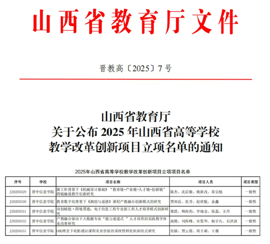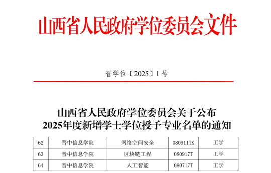 编者的话:2025年,晋中信息学院紧密围绕“信息产业商学院”的办学定位,以培养高素质应用型人才为核心,持续深化教育教学改革。学校坚持以专业认证引领内涵发展,以学科竞赛锤炼创新能力,以教学改革激发课堂活力,全面推动人才培养质量的提升。本年度,学校在权威认证、一流课程、高水平竞赛等领域取得系列突破,以扎实的“钻研”精神,夯实了“双一流之外的首选大学”的坚实基础,并成功获评“新型应用型本科大学”。
