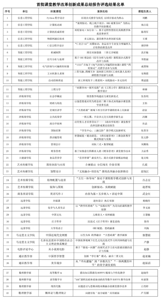 一流课程建设引领教学改革:学校认真落实一流本科课程建设要求,着力打造以“高阶性、创新性、挑战度”为导向的“金课”集群。目前已建成覆盖线上、线下、混合式、社会实践和虚拟仿真实验教学等五大类型的多元化课程体系,形成了梯度鲜明的“院-校-省”三级课程建设梯队。课程建设深度融合课程思政,如《公共政策学》《构成设计》等示范课程,实现了知识传授与价值引领的同频共振,持续助力学校教育质量提升和内涵发展。