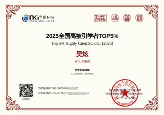 | 西安培华学院吴炫教授跻身“2025全国高被引学者TOP5%” |