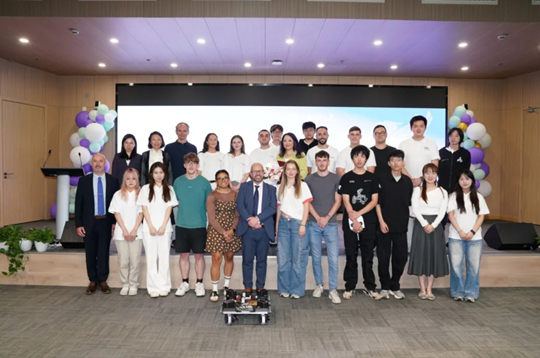 自中英国际学院2024年启动国际夏校项目以来,该项目持续获得众多英国合作院校的积极响应与高度评价。2025年,学院进一步推出以“赋能未来领导者:文化智能塑造全球科技与商业”为主题的国际夏校项目。该项目聚焦科技、商业与跨文化理解的深度融合,开设了《智能机器人》《知识产权与法律实务》《国际商业思维》等核心学术模块,并组织中外学生共同投入科研实践,协力完成了工程机器人及辅助盲人出行设备两项国际化课题的优化工作,相关成果在第四届“利物浦在上海文化活动日”上展示交流。此外,项目还精心融入了书法、太极、剪纸等中国传统文化体验环节,组织学员参访在沪国际企业,并走访沪上标志性建筑,为国际学生打造了兼具文化沉浸与科技实践的多元学习交流平台。