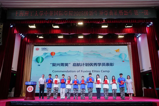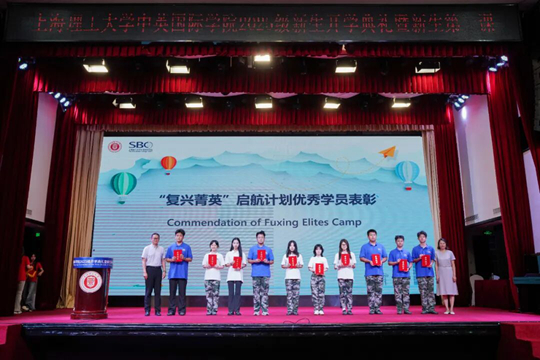 典礼在为期两周的新生“复兴菁英”启航计划回顾短片中拉开帷幕。作为学院新生适应性教育的特色品牌活动,启航计划旨在将入学认知教育有机的融入军训日程之中,通过开展体能训练、专业体验课、趣味运动会等一系列特色活动,引导学生迅速融入国际化校园的同时,选拔一批表现优异的学员。随后,李妍与张峥为“复兴菁英”启航计划优秀学员颁发荣誉证书,对他们取得的成绩表示祝贺,并鼓励大家以此为起点,在未来逐梦的路上继续绽放光彩。