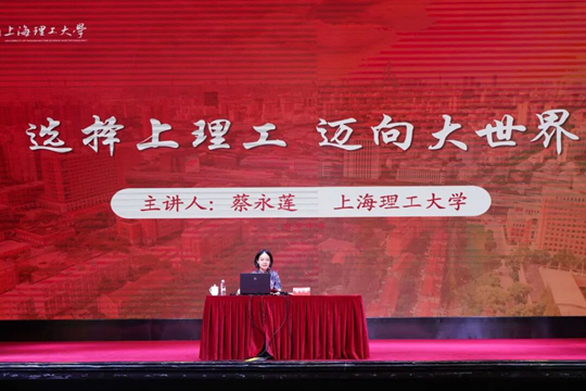 在一部上海理工大学英文宣传片播放完毕后,副校长蔡永莲以“令你印象深刻的上理工”为引,通过轻松亲切的互动问答,正式拉开了“新生第一课”的序幕。她表示,“复兴菁英”启航计划虽充满挑战,但一路走来,见证了新生的成长与蜕变,内心十分骄傲。随后,她围绕“你所来到的上理工与中英国际学院”“如何度过大学四年”以及“未来展望”等多个主题,结合学校发展历程与人才培养理念,为新生生动讲述了学校和学院深厚的文化底蕴、国际化办学特色以及近年来在科教融合、创新实践方面取得的硕果。她鼓励同学们尽快适应大学生活,科学规划学业,积极参与实践。最后,蔡永莲寄语全体新生珍惜青春时光,树立远大理想,以奋进姿态书写无悔青春,努力成长为担当民族复兴大任的时代新人,成为真正的追梦者与圆梦人。