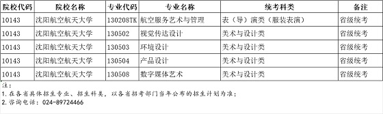 沈阳航空航天大学2024年艺术类拟招生专业对应的省统考科类