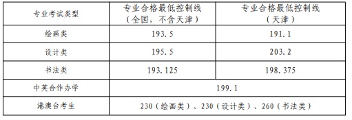 天津美术学院2023年本科招生专业校考合格分数线