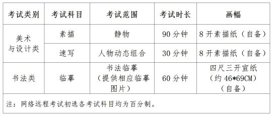湖北美术学院2024年本科招生共有5个校考专业,校考组织分网络远程考试初选、现场考试两个阶段进行,各阶段考试科目及大纲如下: