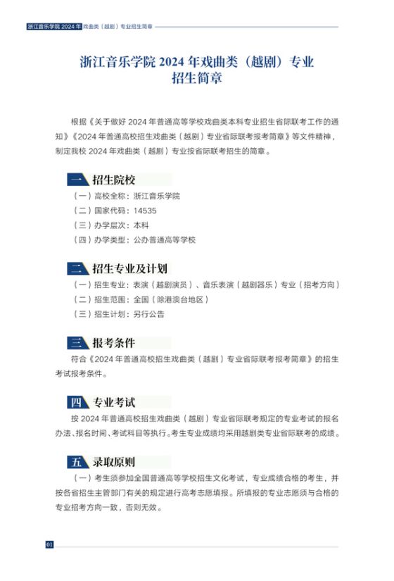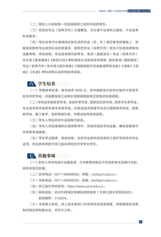 浙江音乐学院2024年戏曲类(越剧)专业招生简章