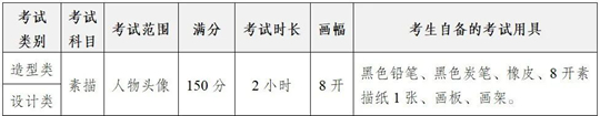 考试用具要求:①铅笔和炭笔不得使用黑色以外的其他颜色;②8开素描纸要求:180克,漂白色、细纹,尺寸27CMX39CM,不得有颜色,不得出现暗纹、边框、界格、品牌标印、折痕等标记,长宽尺寸误差不得大于1厘米;③画板、画架须干净整洁,无任何图文;④考生不得使用规定以外的考试用具。