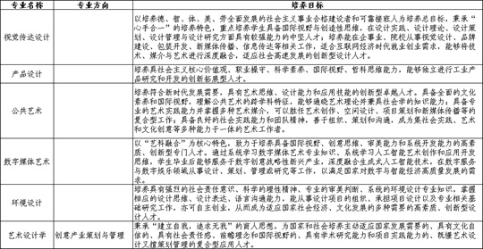 学院现有一级学科硕士点设计学及专业硕士点美术与书法、设计,开设有视觉传达设计、环境设计、产品设计、公共艺术、数字媒体艺术和艺术设计学等六个本科专业。
