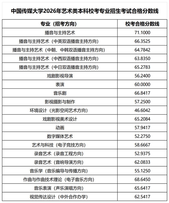 | 中国传媒大学2026年艺术类本科校考专业招生考试结果查询通知 |