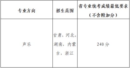 只招收美声和民族唱法的考生。考生自身身心健康状况不影响专业表演、演唱和学习,无发声器官疾病,符合《普通高等学校招生体检工作指导意见》及有关补充规定要求。