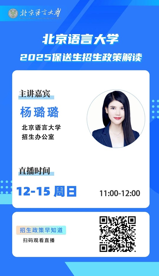 | 直播预告 | 北京语言大学2025保送生招生政策解读线上直播 |