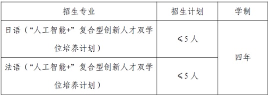 外语类保送生招生专业依托人工智能领域学科优势,理、工、管、文四大学科交叉,培养理论基础扎实、具备卓越实践能力和前瞻创新思维的外语复合型人才。