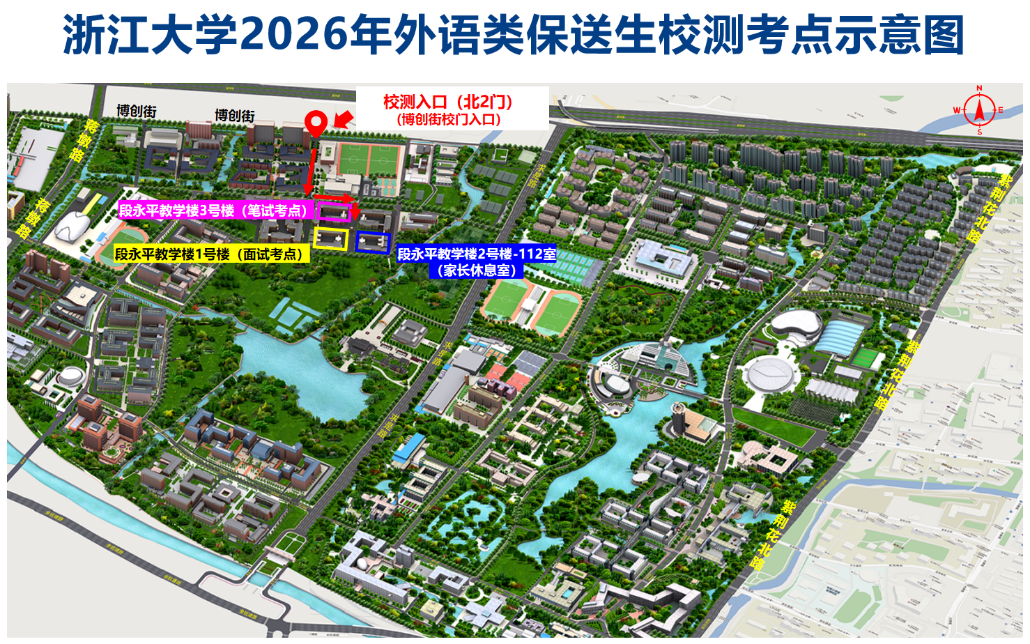 浙江大学2026年外语类保送生招生选拔测试考点示意图.png(点击查看)