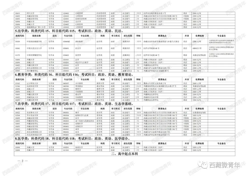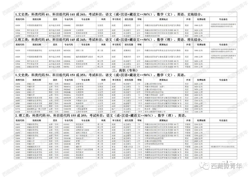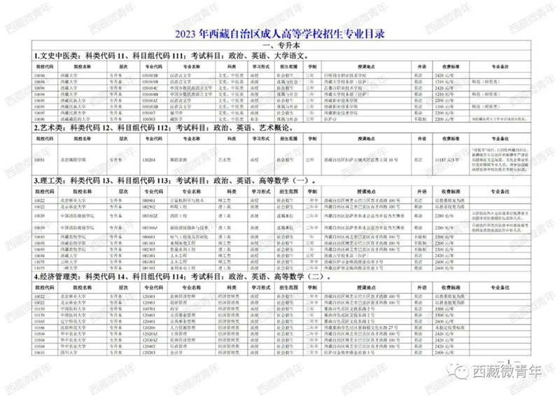 2023年西藏成人高等学校招生专业目录